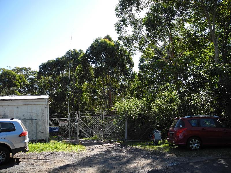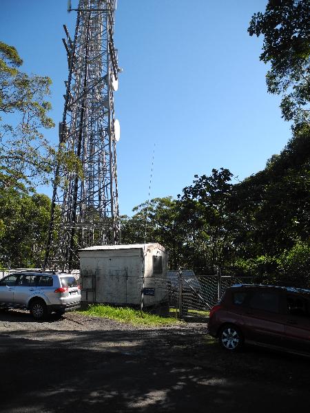 Mount Elliot, just north of Gosford is almost certainly one of the easiest summits anywhere to reach with a road right up to the summit. As you will see from the photos there is a communications station almost on the summit, that we parked outside of. I say almost on the summit, as the actual highest point is actually in the garden of the house across the road. The owner of that house came by while walking his dogs to ask us what we were doing and was very interested (he was duly left with a WIA brochure and contact card for our local (CCARC) club. I’m sure it would be an easy negotiation to park the cars in the car park down the hill and walk up the last 100m to the top, set up and operate in this residents front garden. There’s more here however. Down the road (a lot less than 25m drop in vertical height), there’s a small park with seats and an electric barbeque, where it should also be simple to set up a SOTA station. Activation in 5 star comfort!