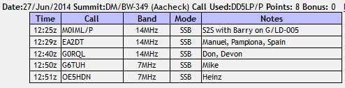 A difficult activation with the power problems, the King of Spain contest and then the rain. It would have been a shame not to have achieved a qualified summit for one last contact, so thanks to Mike and Heinz especially for their contacts.