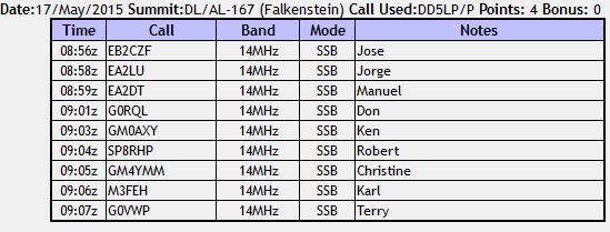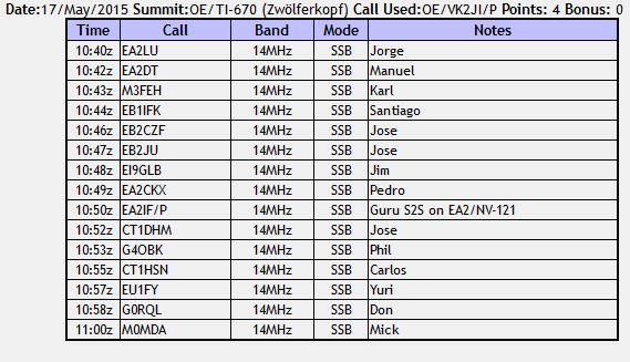 Once set-up I called first in Austria using my Australian call sign – OE/VK2JI/P (when I am outside of Germany, I dont have to use my German call, I can also use either my Australian or English call sign). This was Zwolferkopf defined in SOTA as OE/TI-670. Although 10m was again a wash out with the Interference, I made a good selection of contacts on 20m including a S2S with Guru EA2IF/P on EA2/NV-121. I think using the VK call helped somewhat in the number of chasers calling. After grabbing some lunch, I then activated as DD5LP/P from DL/AL-166 (still Zwolferkopf). This time the number of contacts were less, so I decided to try 40m and managed a few more contacts there.
