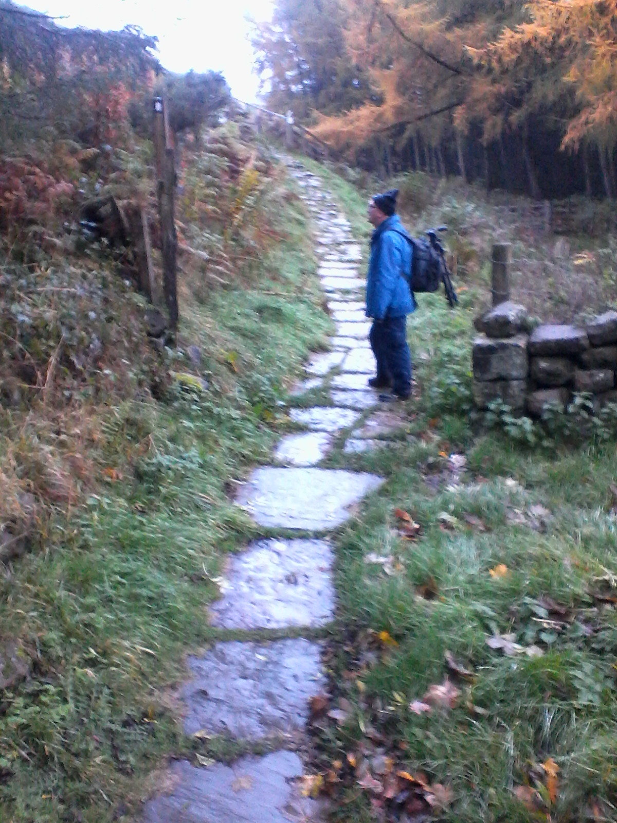 For reference where Google and OS maps show what appears to be a track splitting is in fact two separate tracks with a stone wall between then, If you start up the track on the left of the wall (from where the other track is not visible) you will have gone quite a way before you realise the error and cutting back across is simply not an option as there is no easy way across. So for future activators of G/TW-001, leave the Clay Bank car park, head back across the side road and PAST the large gate and over the brow you will see the small track going up to the left directly from the road – here is a picture for absolute clarity (that’s Jim G8DCD in the picture):