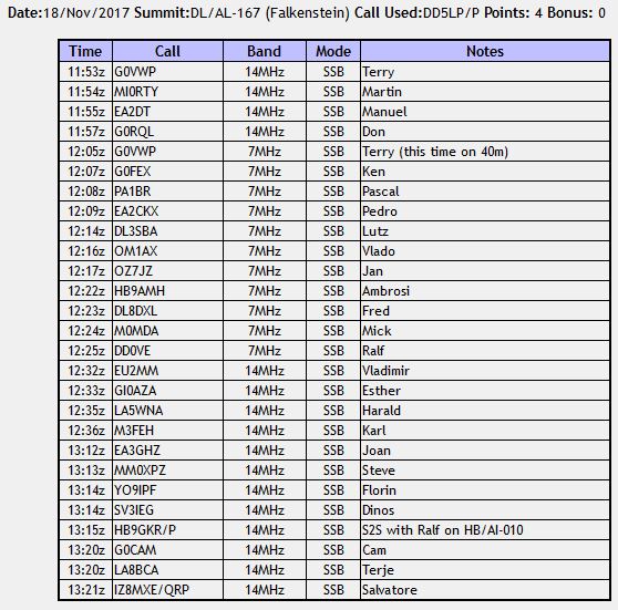 activator log Published 20/11/2017 at 558 × 551 in DD5LP/P – November 18th. 2017 3rd. annual EU-NA S2S event – DL/AL-167 Falkenstein.