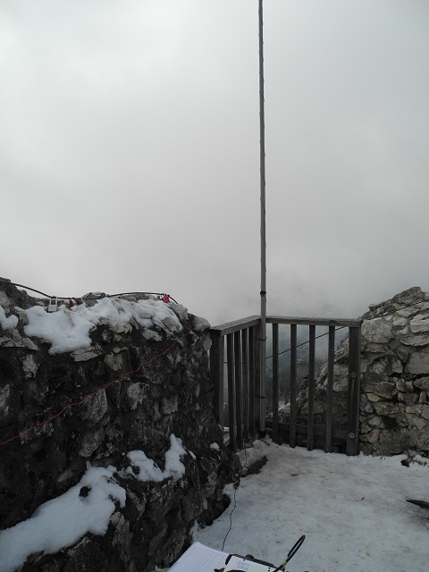 DSCN4005-640 Published 20/11/2017 at 480 × 640 in DD5LP/P – November 18th. 2017 3rd. annual EU-NA S2S event – DL/AL-167 Falkenstein. Base of mast fastened to gaurd fence post.