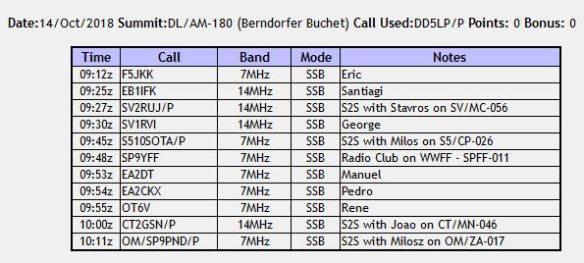 DESPITE ALL THAT, I did manage eleven contacts including 4 x S2S contacts (see log below) in just over an hour, by which time it was time to pack up and go and collect my wife.