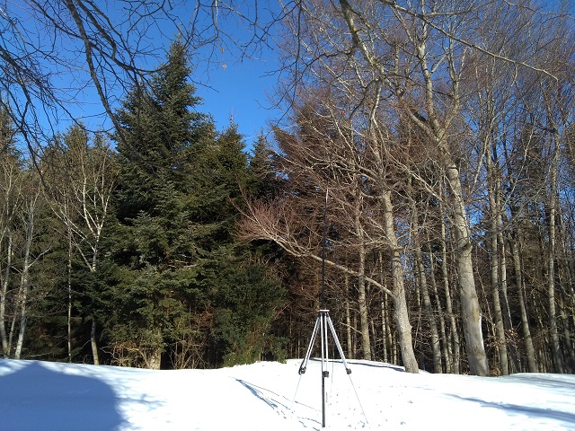IMG_20190215_101617-640 Published 17/02/2019 at 640 × 480 in DD5LP/P – February 15th 2019 – DL/AL-179 Weichberg. Tripod supporting 6m mast and linked dipole on 40m.