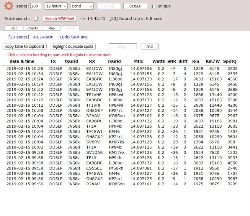 WSPR table