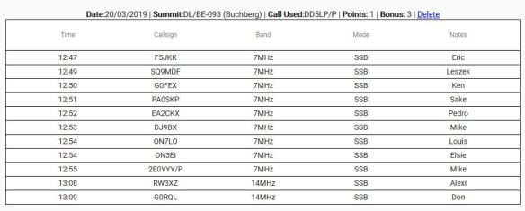 So after that it was time to get at least 4 contacts in the log. I actually got nine 40m contacts in eight minutes, one of which was an S2S with Mike 2E0YYY on Walton Hill in the UK. I also decided to give 20 metres a try so I lowered the mast, took out the links and raised it again for one 5-9 contact into Russia (off the “back” of the antenna) and a 4-4 one into the UK. Band conditions on 20m were not good but at least this proved that the antenna works fine on both bands. After this “acceptable” activation, I decided to pack up and head home as I had three more summits planned for the following day (see later report on these). The drive home was uneventful and I was home in time to get the battery box on charge (it had used about 20% of the capacity of one of the two 5aH LIPO batteries in the box) and make sure all of the equipment was ready and packed for the following days activations as an early start was planned.