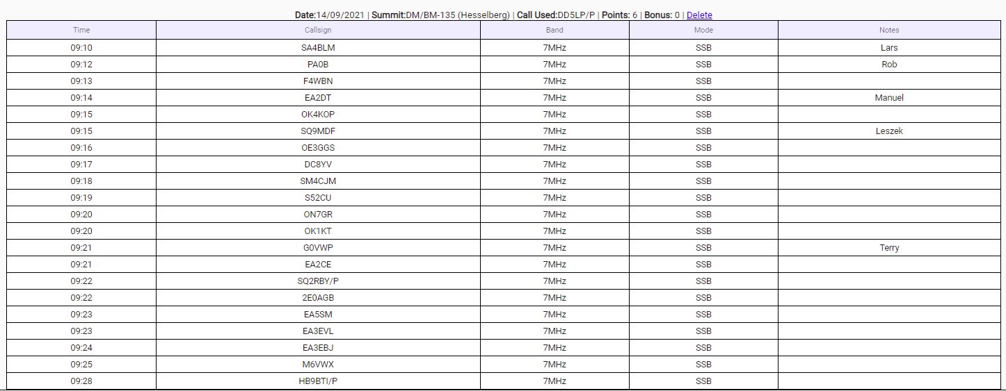 After setting up, I started on 20 metres, picking up two S2S contacts in the 15 contacts made and I then collected another 6 contacts on 40 metres. It was nice that some of the stations I had worked on one or other of the previous two summits were there to work me again. In fact, one of the S2S contacts from this summit was HB9BTI again, still on Säntis HB/AI-001. Although not rushed, these 21 contacts only took 25 minutes to get in the log.