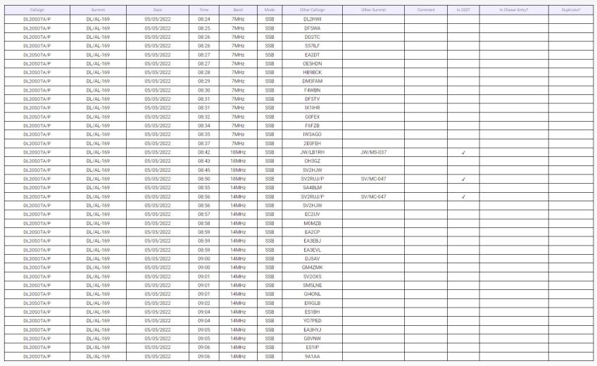 Activator log Published 06/05/2022 at 1435 × 880 in DL20SOTA/P – May 5th 2022 – DL/AL-179 Weichberg & DL/AL-169 Auerberg.