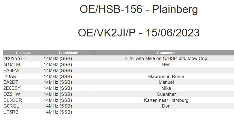 I decided to start on 20m as Mike (2R0YYY) was again out, this time on a HEMA Summit – G/HSP-020 Mow Cop, so we completed the first-ever HEMA-to-HEMA summit contact from England to Austria. The following nine contacts were with stations from the UK, Spain, Italy, Denmark, Germany and Ukraine.