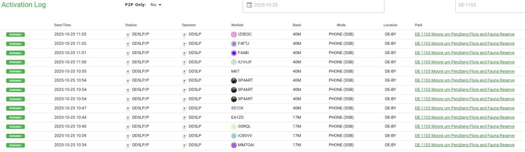 Continuing my “First activator” challenge, these three parks are all new to POTA and located near a Museum/Art Gallery that my wife likes to visit, so this looked like a good combined trip, given that activating points in each of the parks were around 20-minute drives from each other, around the Pemzberg area. After planning this, however, I caught a cold, and in the week it took me to recover, all three parks were activated by others and hence no longer counted towards my personal challenge, where I am currently listed as the first activator of 40 parks. The first of the three to be activated was done by a fellow ham living in Upper Bavaria, but the other two were “grabbed” by a ham travelling from North Rhine-Westphalia. The last one, the day before I activated it, he uploaded his log while I was out activating. So, even though it was shown as not yet activated before we left in the morning, when I entered my logs that evening, I could see it had gone.