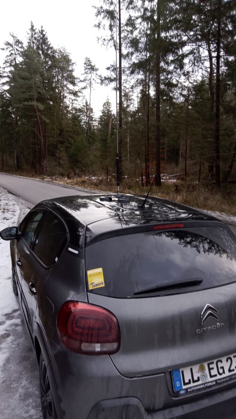 Regarding the high SWR on 40 metres, at the time, I wasn’t sure why this was happening. Perhaps the antenna’s adjustable coil was wearing out (I have had the antenna at least 8 years) – Perhaps the 3-magnet base?? At least I had a temporary fix for the time being. Later, at home, I think I may have the answer … The calibrations that I made with the antenna were with it on top of our Peugeot car. In the meantime, we have changed to a similarly sized Citroen car, and the actual “ground plane area” and type of steel, the magnetic mount is sat on, could easily give a different ground plane to the antenna. On the higher bands, the ground plane has a lesser effect than on the lower bands, such as 40 metres. It could be that I just need to recalibrate the antenna scale settings on the new car’s roof!