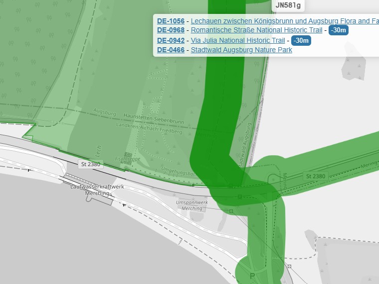 POTA DE-0466 Augsburg Statswald/DE-0942 Via Julia NHT/DE-0968 Romantische strasse/DE-1056 Lechauen