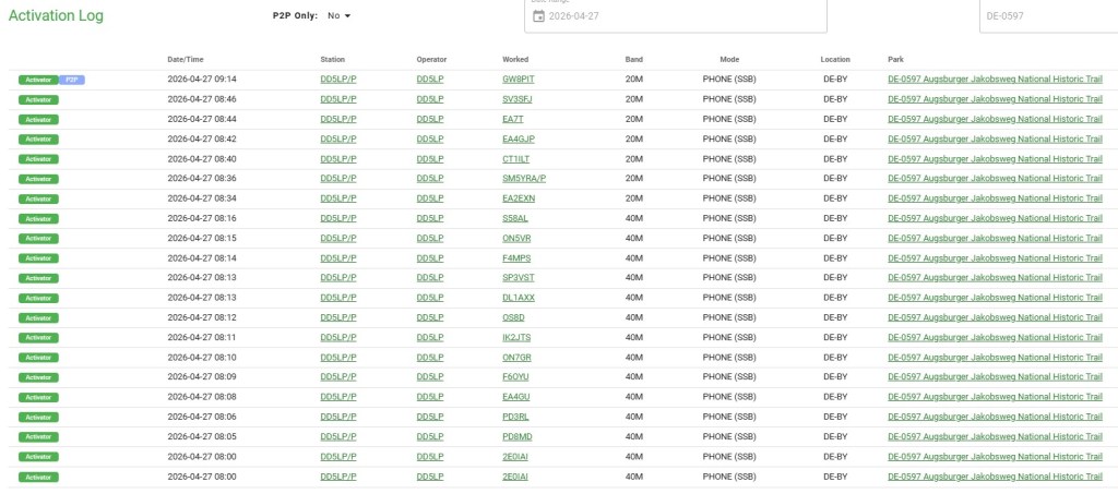 I started off with a P2P and hunted some others during the activation. Unfortunately, of the four P2P contacts, POTA is only acknowledging one, although the other stations have entered their logs. I suspect it is that their logs do not contain their call with and without “/P”, which mine do, in case I get logged with or without the “/P”. This is done by using the operator and club call fields in the submission. Really, the POTA P2P logic SHOULD match the calls without the extension, and then such problems would not happen.