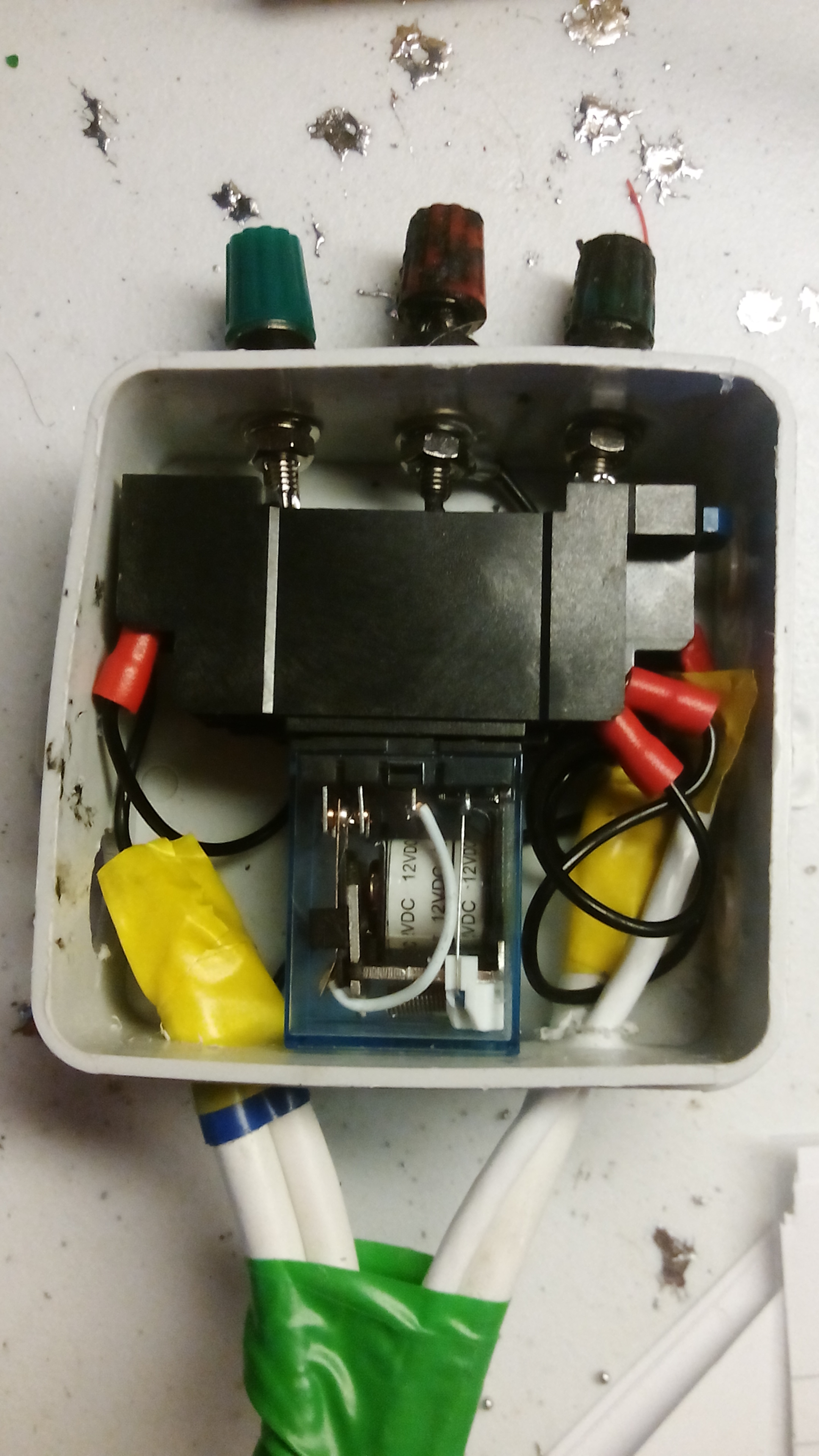 Here is the prototype (rather messy) antenna switch box. I have applied 12v to the relay supply and it seems that everything switches as expected.