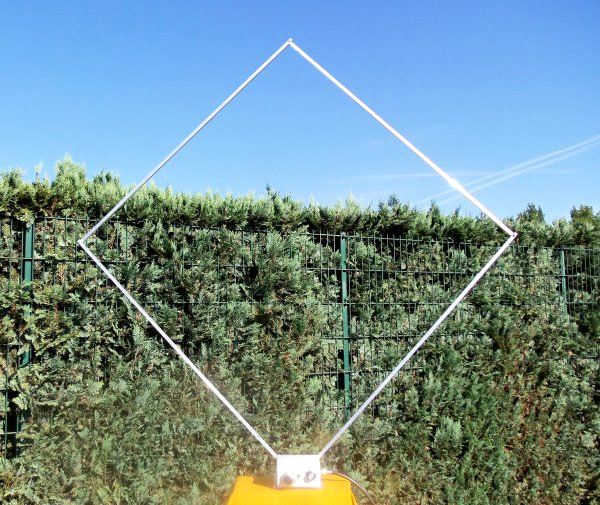 Asymmetrical square loop with square conductor cross-section. The test winner of a screening of 10 loops with respect to the cheapest coupling or largest field strength. Operation for the 40 + 80m bands.
