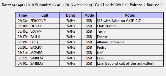 The original plan was to activate Eisenberg DL/AL-171 on Good Friday 30th. March 2018 to try again for long path into VK/ZL after failing about two weeks previously. In the interim I had addressed some of the gear problems and hoped for better success. At least I should be able to grab the 3 winter activator bonus points (which cease at the end of March in the DL region). This summit, which while still some distance from home, given the clock change a week prior, would be accessible hopefully in time for the long path window. I did not want this to be an organised S2S event as the previous had been but did ask a few people if they were likely to be on. One, Rod VK2LAX said he would probably be able to get out to Mount Elliot VK2/HU-093 while Mike 2E0YYY and John VK6NU also planned to get out as well. Due to a few problems, I decided to reschedule the early activation to Easter Saturday, the 31st. of March and announced this on the reflector. Given that I now had Friday clear, I could go and activate the normally easy Laber and Wank summits on Good Friday, to grab their winter bonus points.