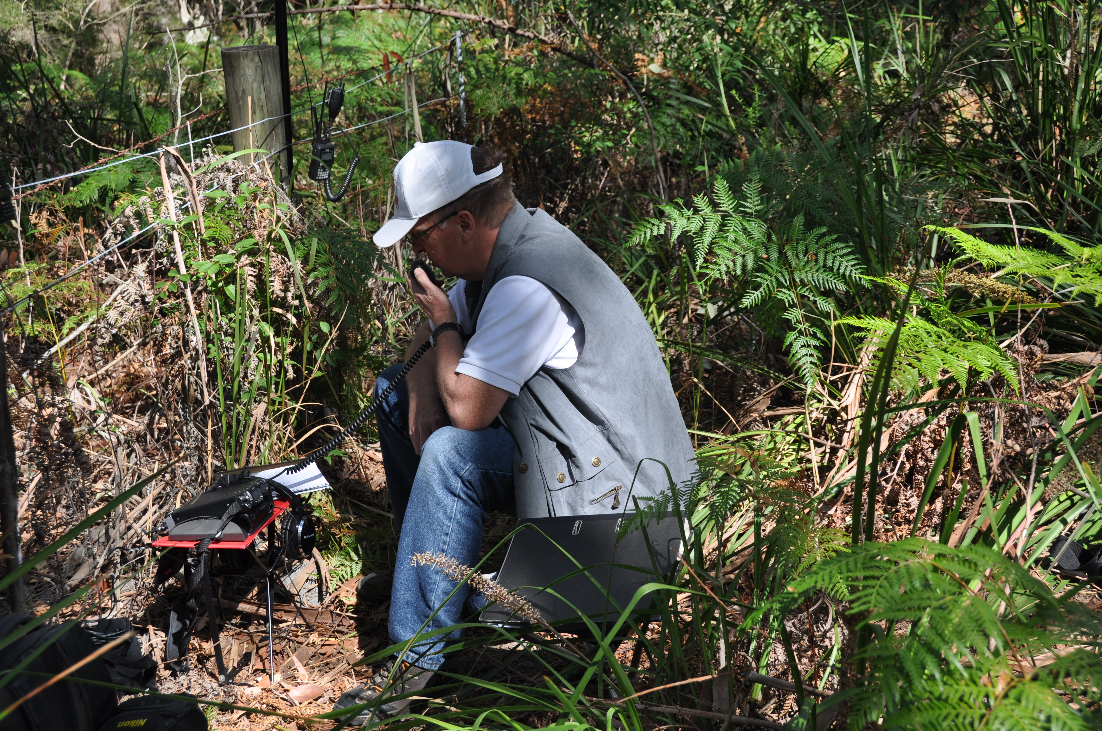 VK2LC and Vertical antenna in background, my (VK2JI) equipment in foreground.