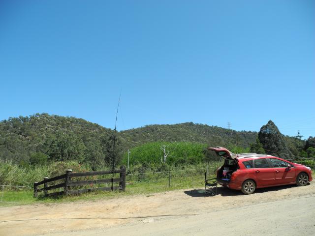 Before going, I took a good look at the summit and it’s access using Google Earth, Google maps and the NSW governments SIX maps. As it turns out the actual summit is on private ground right where the 33KV electricity feed comes across however the height difference from the road (which runs along the top of the ridge) to the summit is marginal – in fact looking from the road you cannot see any height difference to the actual summit. This means that under the activation zone ” within 25 vertical metres” rule almost anywhere along side the road is acceptable. Here is the next problem however as all of the houses in the area have their nicely maintained gardens going right up to the road side, so a simple pull-off is not possible.