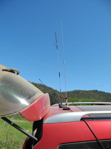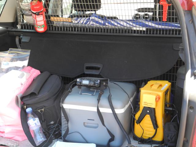 Here are a few photos from the set-up – note the 2/70cm and quad band (10/6/2/70) mag mount antennas on the car roof and the linked dipole in the background.