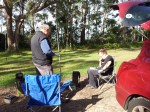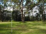 The first area we planned to visit was Mt. White, which is part of the Central Coast of NSW just north of the Hawkesbury River. We aimed to get there in time for the multiple activations planned in VKs 1, 3 & 5 before and after the UTC clock change-over. Our intention was never to scale the actual peak, just to operate portable from somewhere in the area. Not having been to the area before we did not know what to expect and when we arrived and headed for the end of the highest road, we found there was nowhere to pull off the road to park and set up station. The fields, used in the most part for horse breeding and training in this , were fenced right up to the roadside or where there was some space it had be prepared like a front lawn by the owners of the adjacent property and certainly would object to us parking our cars on it and setting up a mast! So we headed for our second choice high road in the area only to find similar problems except on one verge were all seemed OK, there were high voltage power lines so low that our vertical antenna would be amongst them. Luckily after parking, we realised this before we set up the antenna. After more searching (and with time running out), we eventually found some space at the side of the road and set up quickly. There was still a cable overhead but just a telephone cable this time. Although it looks sunny in the photos there was a bitter wind and we had set up in the shade so the sun did not help to defrost the frozen fingers trying to operate – I must remember gloves next time!