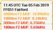 MUF readings are always given from a particular position and for a specific distance. In some cases a MUF can be calculated for a particular A to B signal route.