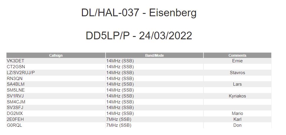 On arriving at Eisenberg, I decided not to take the 10 metre mast, the tripod or the VP2E antennas and stick to the 6 metre mast and the Aerial-51 OCF dipole. I’d just get the minimum 4 contacts and then head back down to the car park and to the restaurant for a well-earned “Weissbier” (Wheat beer).