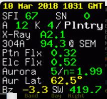 SFI of 67 (The formulae given in the June 1996 edition of the IPS Solar Geophysical Summary states 67.0 as the minimum possible value.). K index of 4 means REALLY noisy.