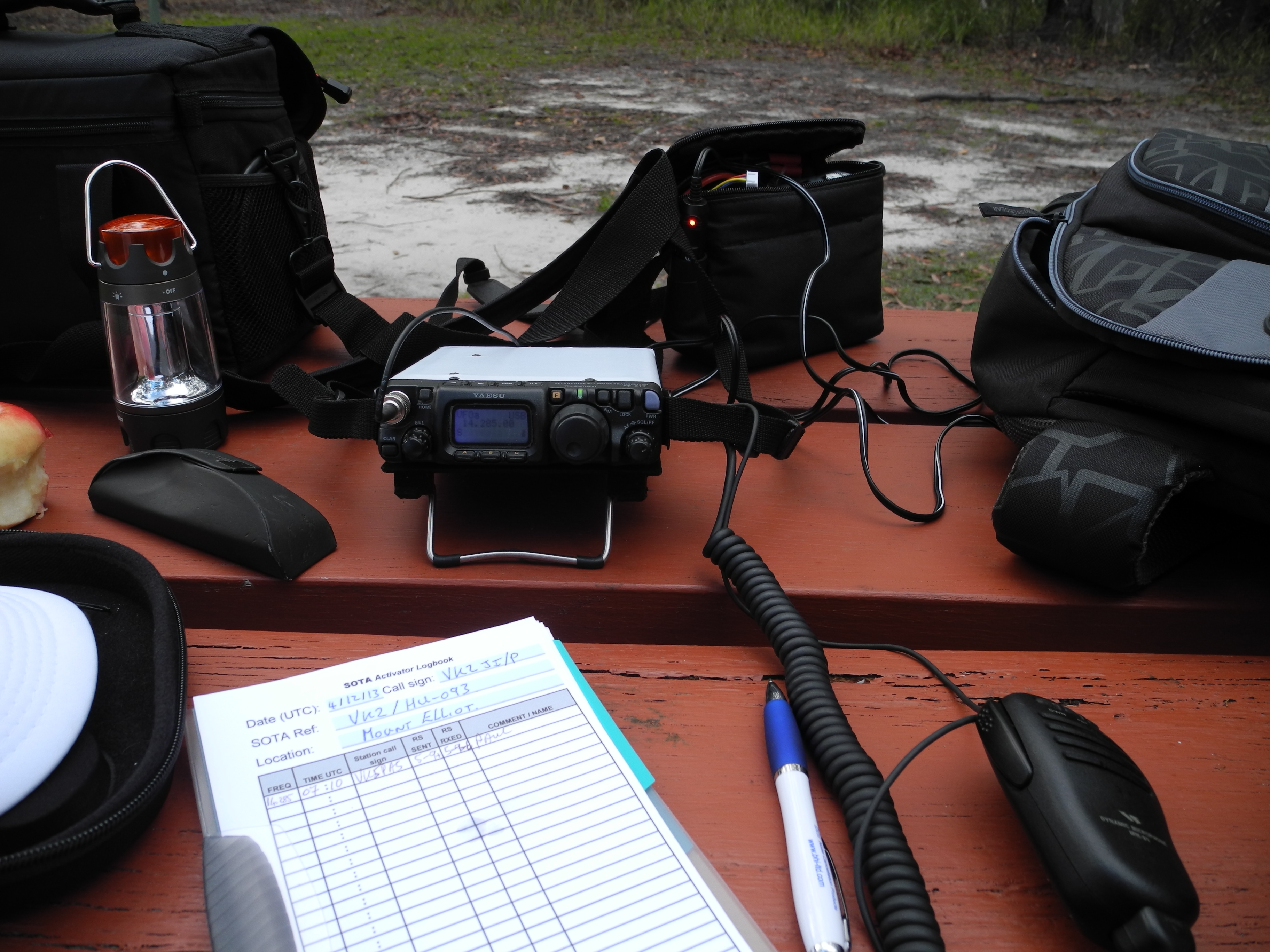 As stated above, Mt Tomah at the summit has a radio tower that emits a high level of noise on the HF bands. So the intention this trip was to find a location as far away from the radio towers as possible while still being within the activation zone. Mapping the 25m vertical drop area, showed that the AZ goes right up to the main “Bells Line of Road” road and indeed a little way on the other side. This puts the “Mt Tomah rest area” nicely within the AZ and it provides some concrete shelters and tables to set up at. As this location is on the edge of the AZ, a few steps down into the bushes (the land drops off quite steeply) takes you out of the AZ.